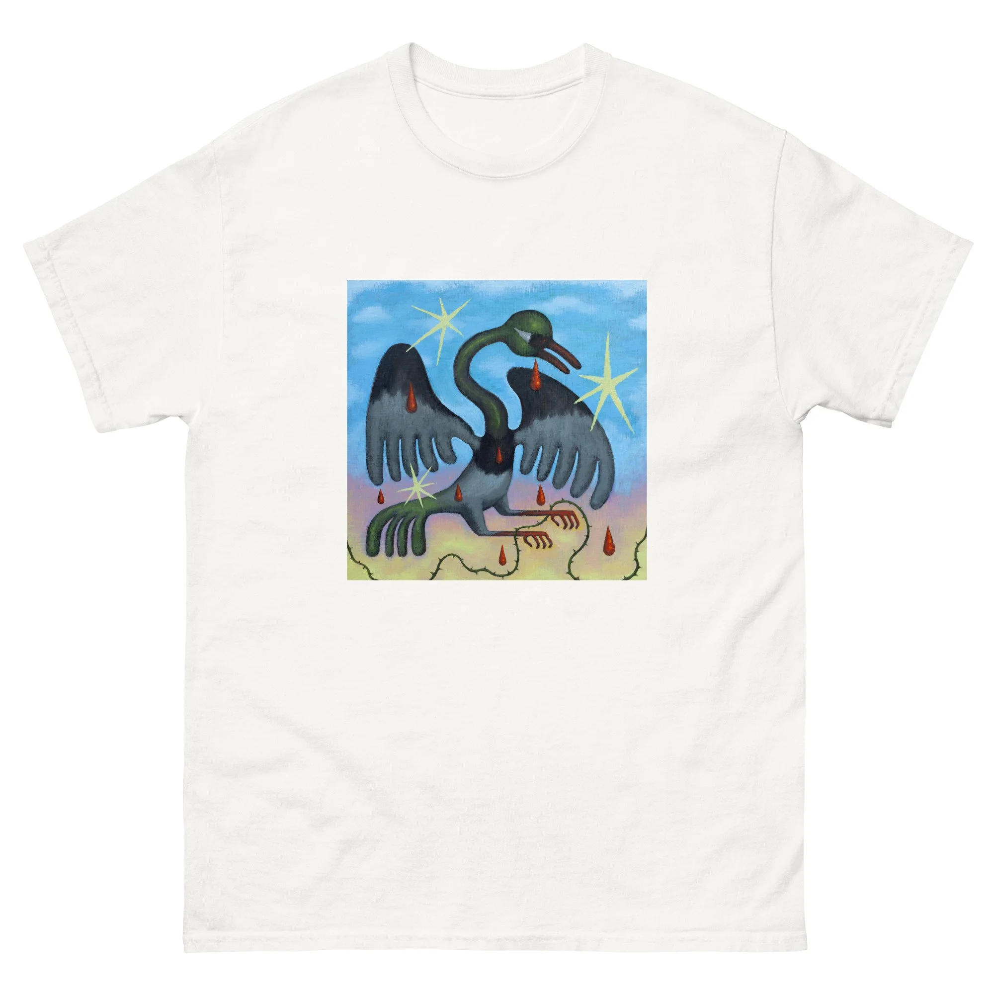 Categories: All Shirts Paintings Prints All / The Moon's Last Breath shirt Star Finder shirt Wounded Bird shirt To Escape the Horrid Sun shirt Fish Out of Water shirt Comet Head shirt